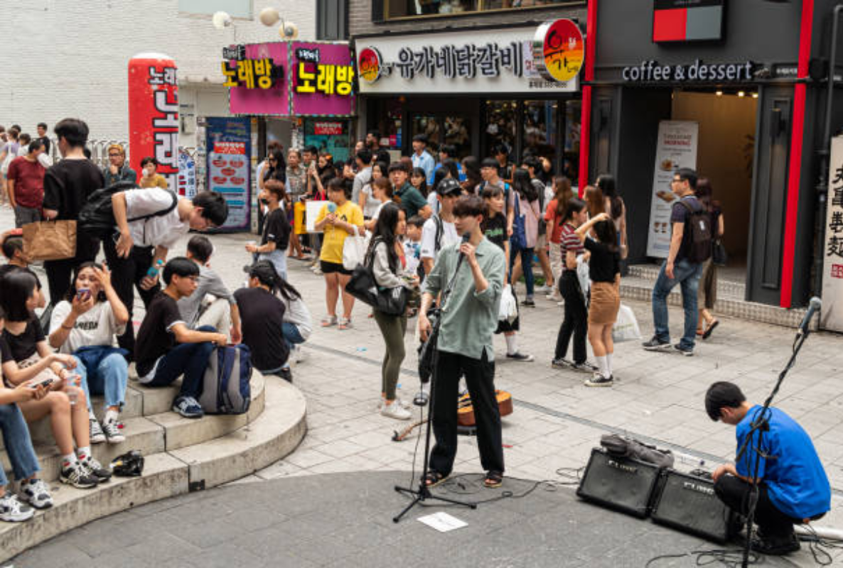 Hongdae is a dream come true for K-Pop fans 🎶💃. This lively district buzzes with music, where talented young singers and dancers perform spontaneous shows that light up the streets. These impromptu performances are more than entertainment — they’re a glimpse into the creative heartbeat that powers Korea’s music scene.