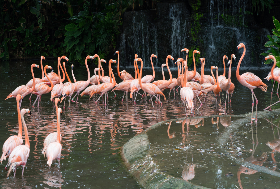 For a relaxing interlude, visit the Waterfall Aviary, a cool, green retreat filled with exotic birds amid soothing waterfall sounds. Penguin Coast stands out as a unique spot where tropical penguins delight guests with their playful behavior in a refreshing environment. Take your time here to appreciate the serene ambiance and observe the penguins’ charming antics.
