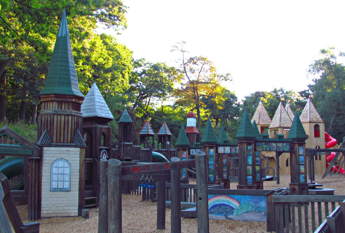Designed for imaginative play, this large playground features climbing ropes, slides, ladders, and castle-like towers. Itâs a favorite among children and provides a fun and safe environment where they can explore and create memories.