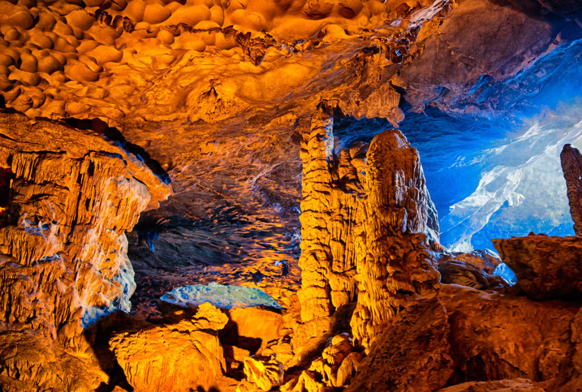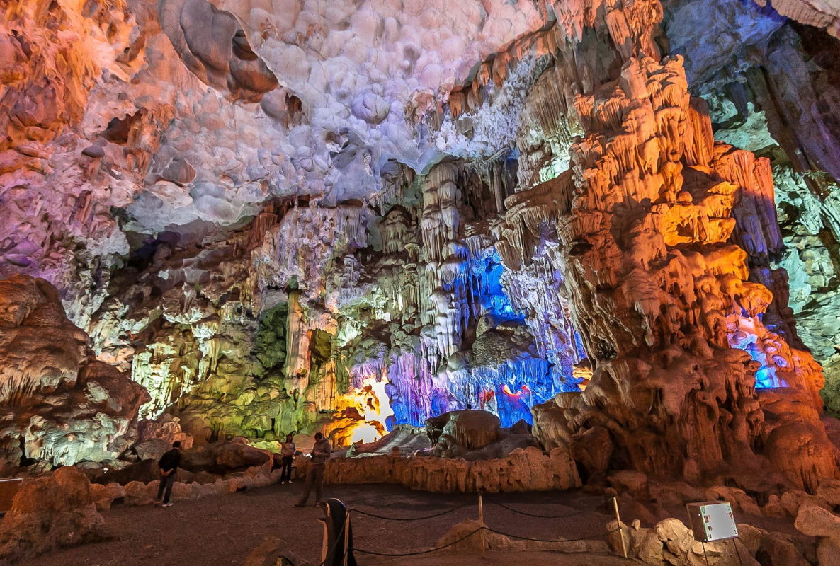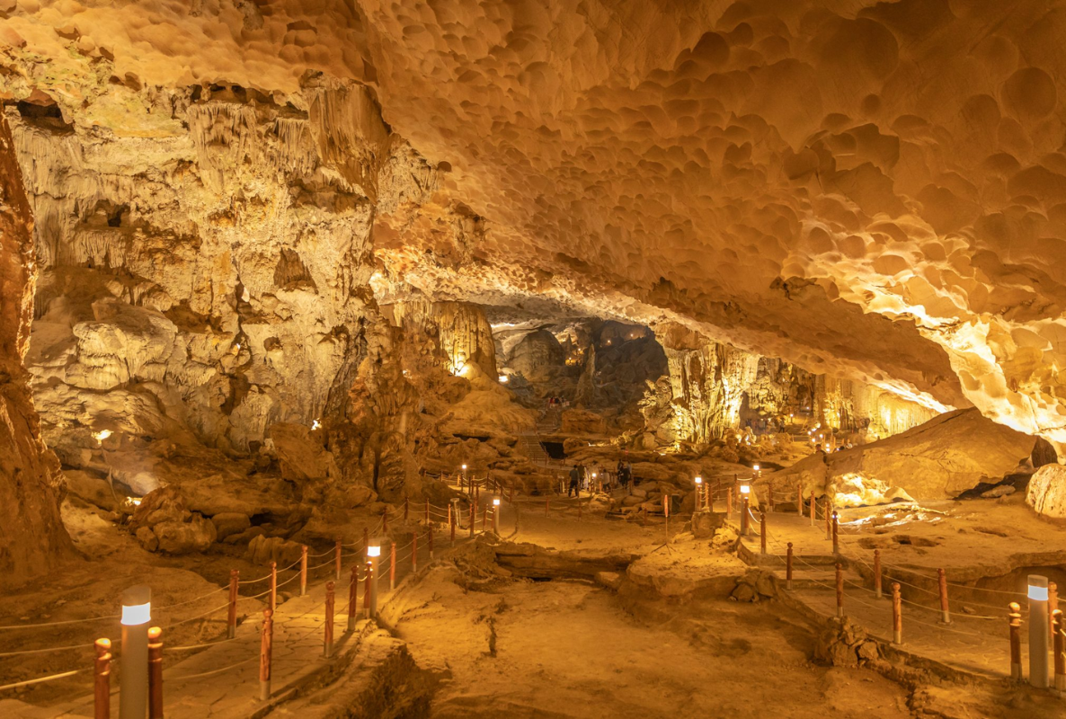 The name "Sung Sot" means “Surprise” in Vietnamese, perfectly describing the cave’s dramatic interior. Visitors first see a small, narrow entrance tucked into limestone cliffs. Then, stepping inside, they enter a huge chamber with soaring ceilings adorned with complex stalactites and stalagmites. This striking contrast between exterior modesty and interior grandeur often leaves guests amazed.