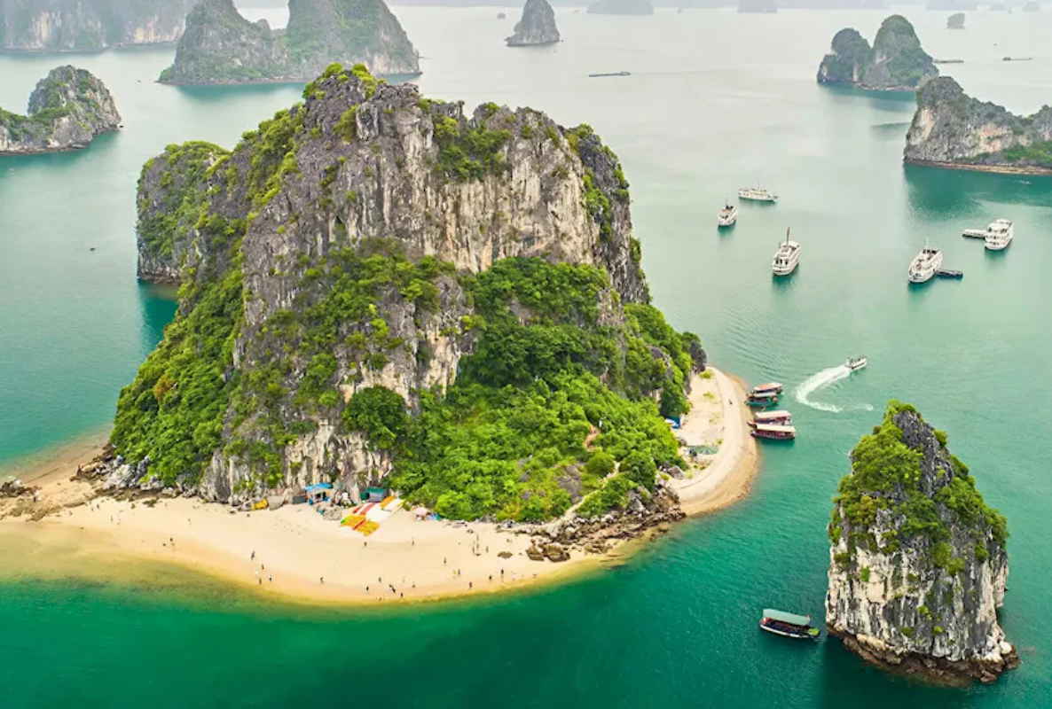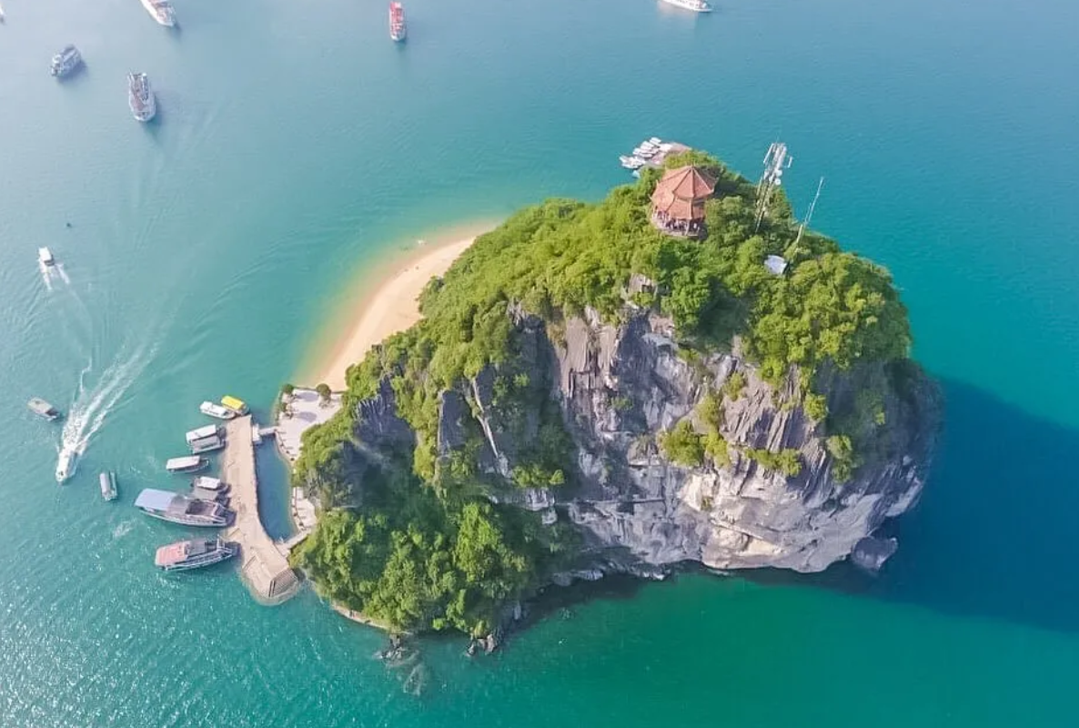 Ti Top Island is a small yet distinctive island in Ha Long Bay, covering about 15 hectares (0.15 kmÂČ). Despite its modest size, the island stands out with its round shape and lush vegetation. Its formation is the result of millions of years of limestone erosion, which created the towering karst structures characteristic of this UNESCO World Heritage site.