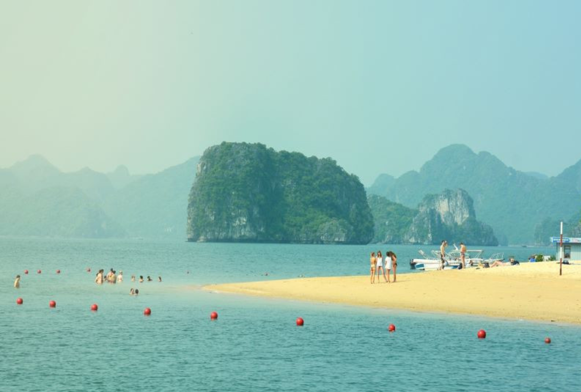 Ti Top Beach, also known as Vang Trang Beach, is a peaceful spot with calm turquoise waters and soft sandy shores, ideal for relaxation. Swim safely amid stunning limestone cliffs and verdant surroundings that define Ha Long Bayï»ż's iconic landscape. Post-swim, bask on the sands or explore the beachâs natural beauty, perfect for a tranquil getaway.