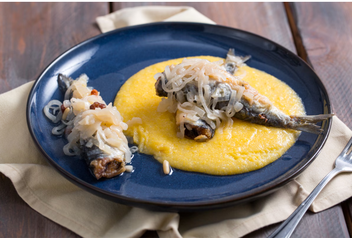 Sarde in Saor: Sweet and sour sardines with onions, pine nuts, and raisins, a Venetian classic.