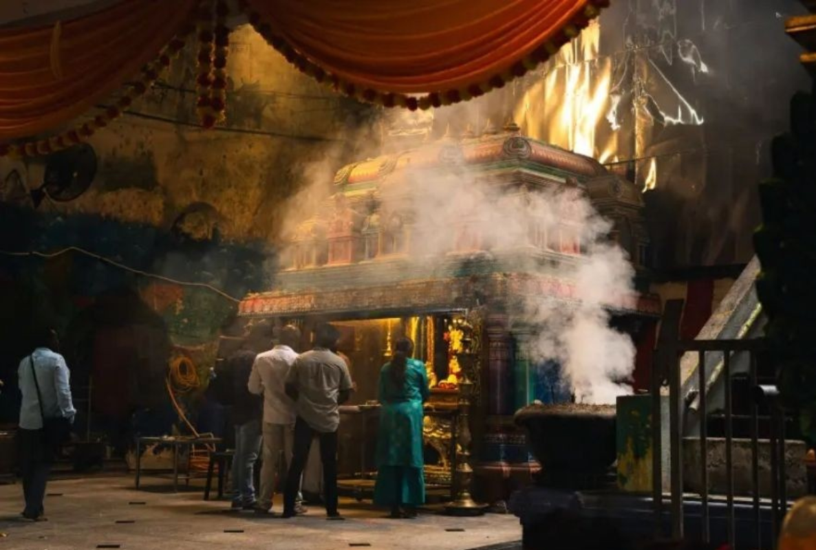 Offer Prayers at the Temple Cave After conquering the 272 steps, you will enter the majestic Temple Cave. With a ceiling soaring over 100 meters high, the vast cavern is filled with ornate shrines dedicated to Lord Murugan and other Hindu deities. Natural light streams through openings in the limestone, creating a mystical and serene ambiance. Here, visitors can participate in or observe the offering of prayers with flowers and incense, providing a deep connection to the local Tamil culture.