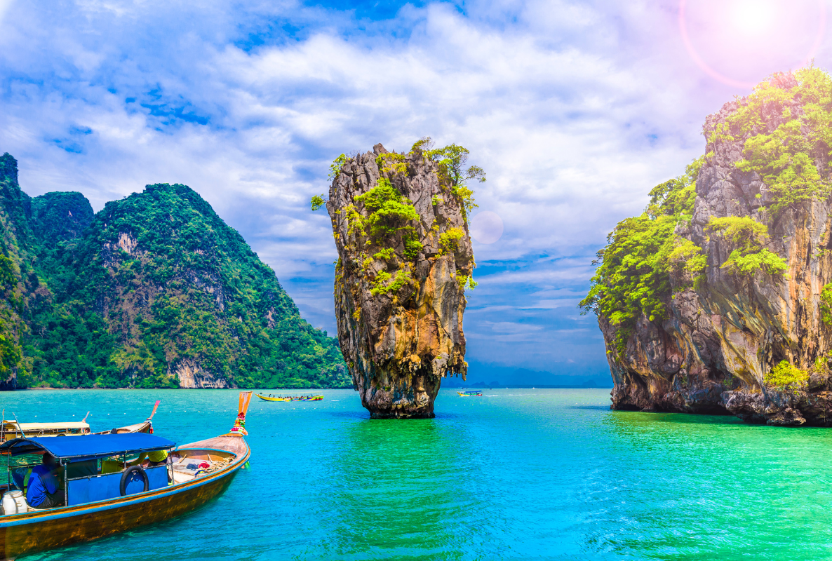 James Bond Island is accessible by boat from Phuket, Phang Nga, and Krabi.