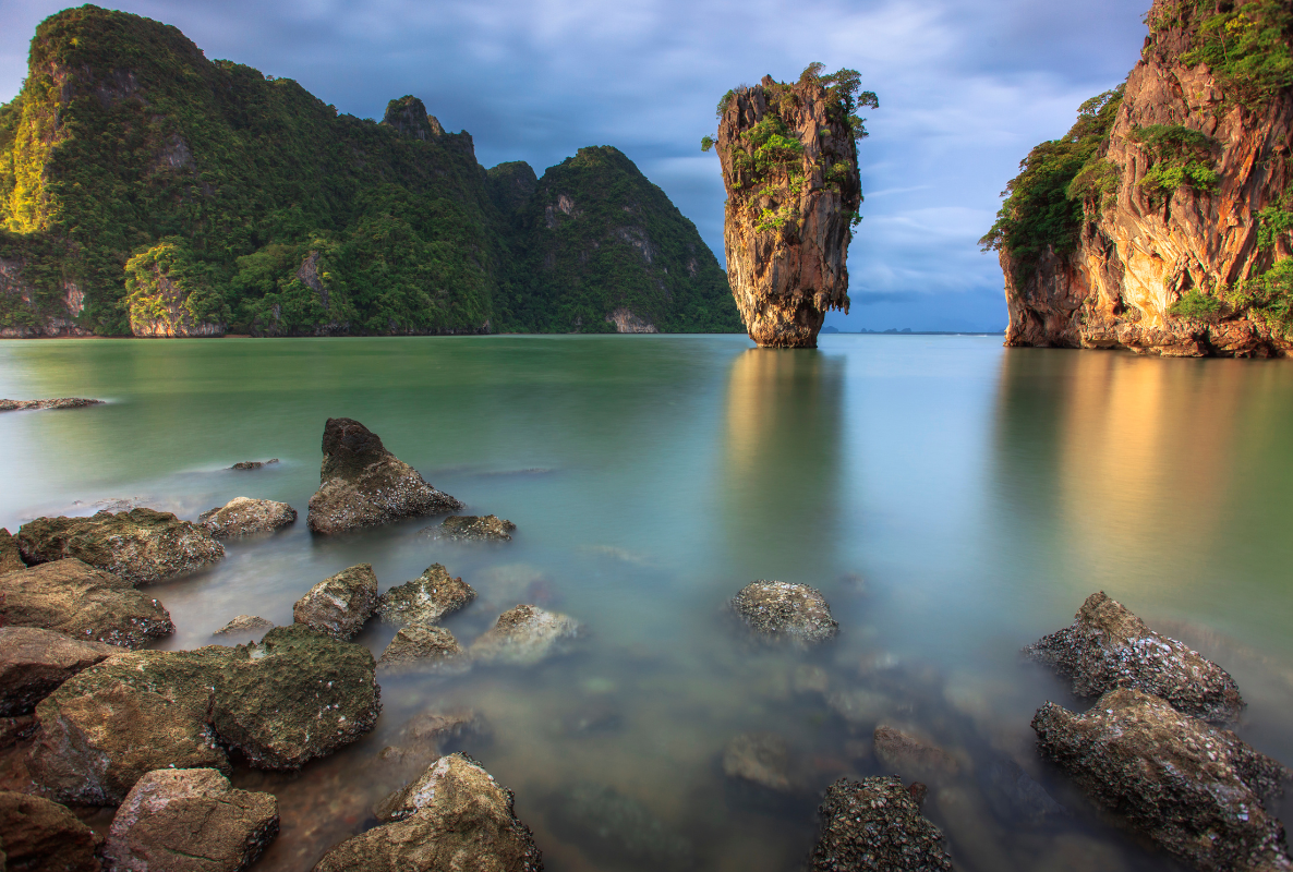 Officially known as Khao Phing Kan, this small island captures Thailand’s wild coastal charm. The contrasts here are striking — turquoise shallows, echoing sea caves, and souvenir stalls tucked between cliffs. The atmosphere is both lively and tranquil, ideal for explorers, photographers, and movie fans alike.