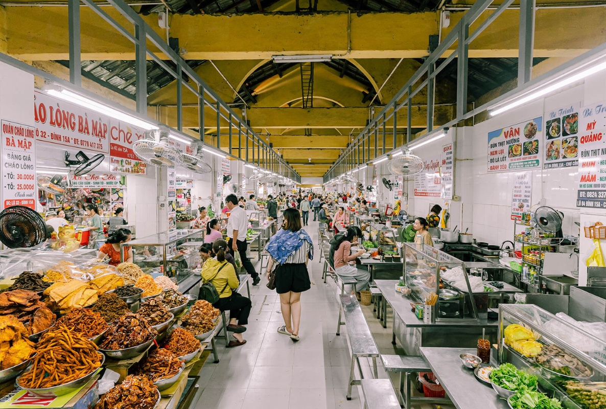 Start with a bowl of Mi Quang â turmeric-yellow noodles topped with shrimp, pork, and crunchy rice crackers â from a bustling corner stall thatâs been around for decades đ€. Then, wander over to the Banh Xeo station, where crispy Vietnamese pancakes are folded hot off the pan and paired with fresh herbs. Donât miss Che Thai, a colorful sweet dessert served cold â perfect for cooling off after shopping đ§.