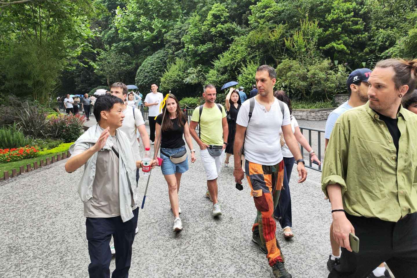 Crowds appear around popular spots, especially near the Chengdu Research Base of Giant Panda Breeding, but the mood stays relaxed.