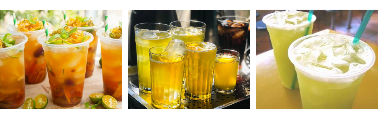 Having a traditional street refreshment with a cup of sugarcane, coconut kumquat, or herbal tea.