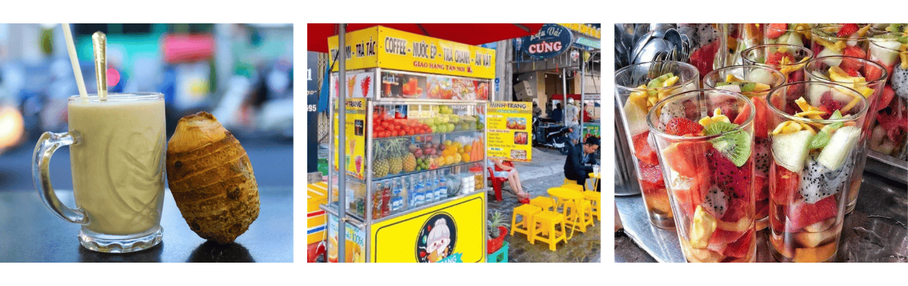 Take a short break at a small roadside stall for a chilled tropical fruit smoothie, a refreshing taste that defines Saigon’s street-side charm.