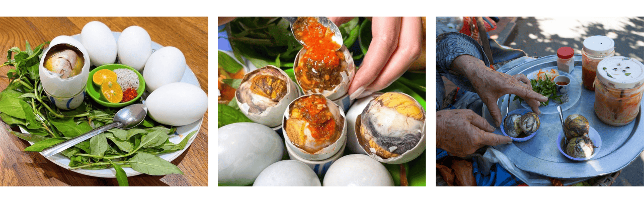 Try the famous hột vịt lộn (balut), a unique street food snack and an unmissable culinary experience in Thao Dien.