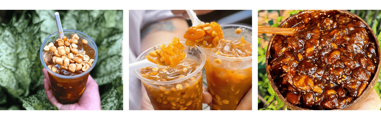 Cool off with a glass of iced tamarind, topped with roasted peanuts for a sweet, tangy, and crunchy local treat.