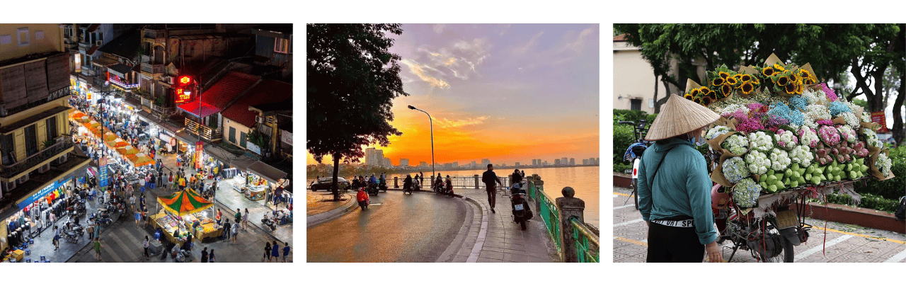 Dong Xuan Market, Hoan Kiem Lake, West Lake, Hanoi Old Town, Hanoi Train Street and so on...