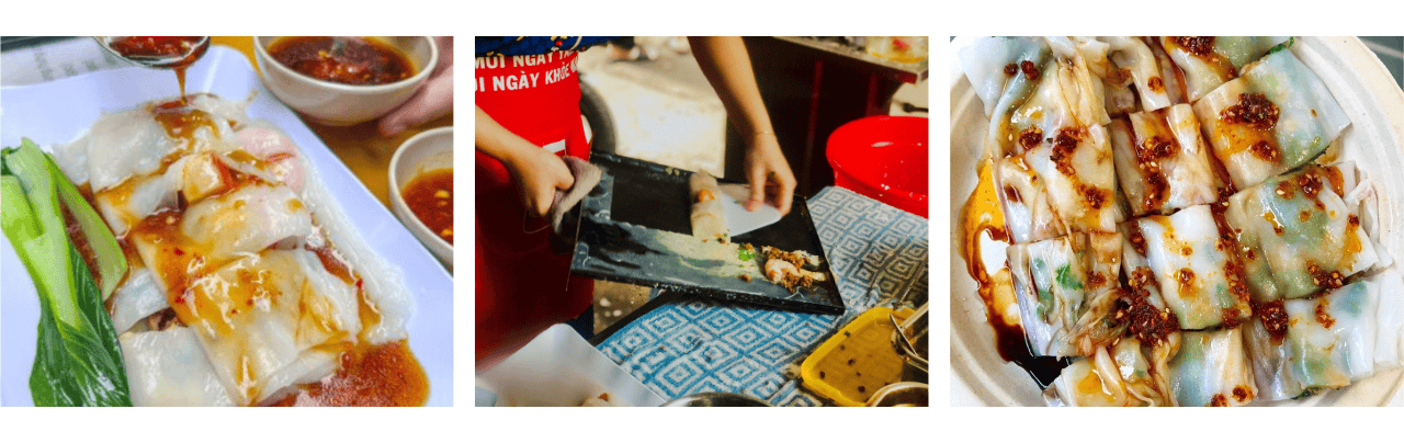 Stop by Bánh cuốn Hongkong, where each delicate sheet is steamed to order until perfectly thin and soft, then filled with savory minced pork and shrimp, topped with soy sauce and crispy fried shallots.