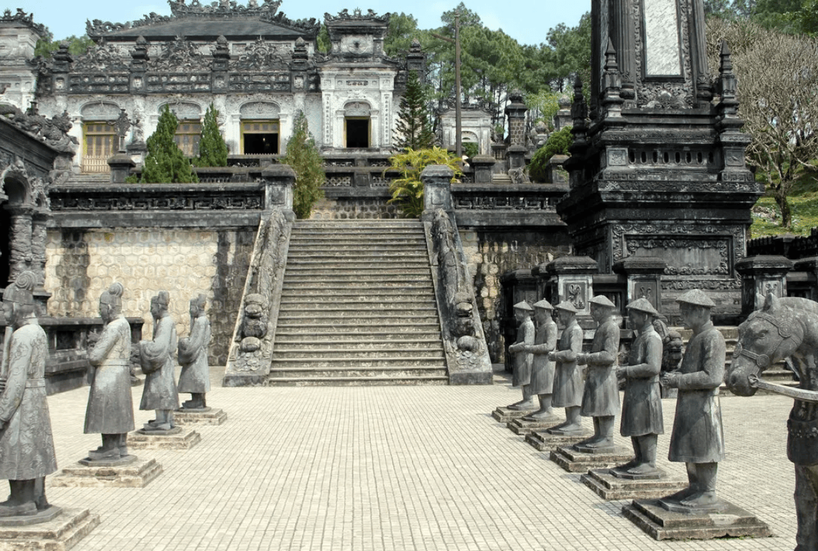 Visit the mausoleum of Emperor Khai Dinh, renowned for its unique fusion of Eastern traditions and Western architectural influences.