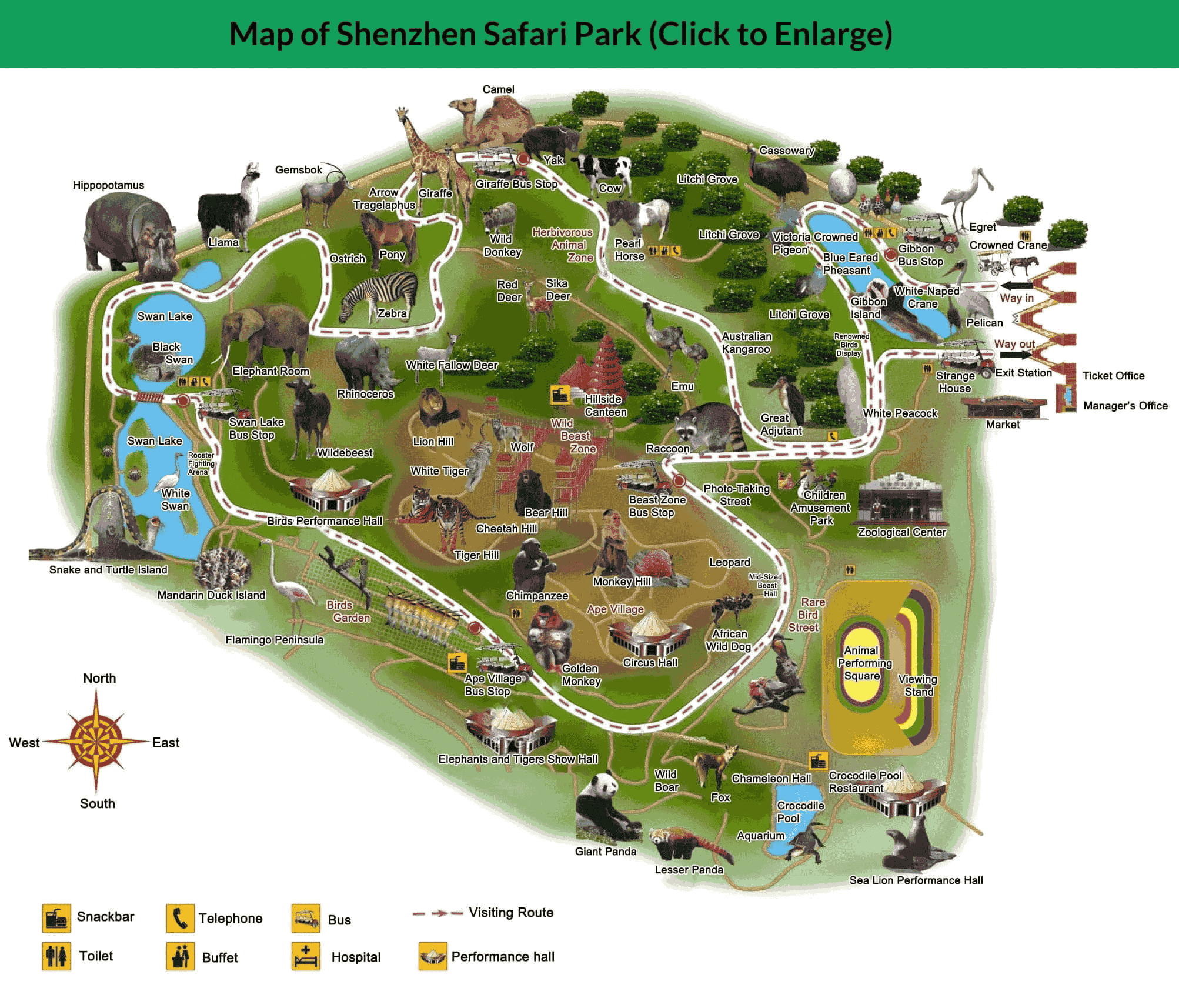 The Safari Park Shenzhen admission ticket is only valid for entry to the main gate and does not include other paid attractions within the park.