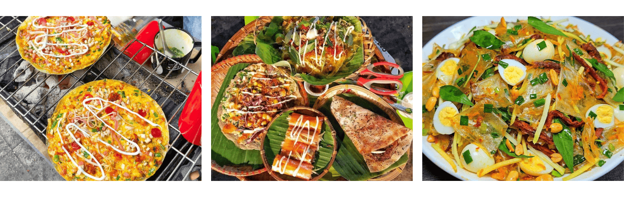 Many street vendors sell Vietnamese mixed grilled rice paper with varied toppings that bring eaters a flavorful taste.
