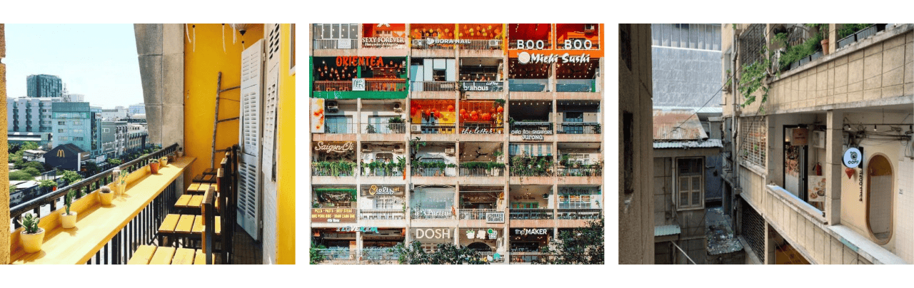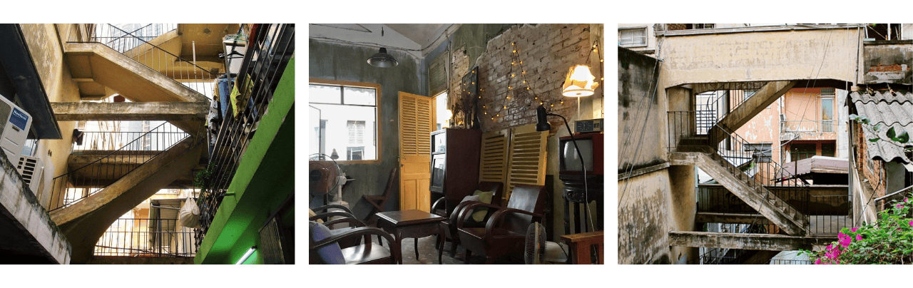 Cà phê vợt ("racquet" coffee) and capture vintage photos against the old walls and staircases of the apartment complex.