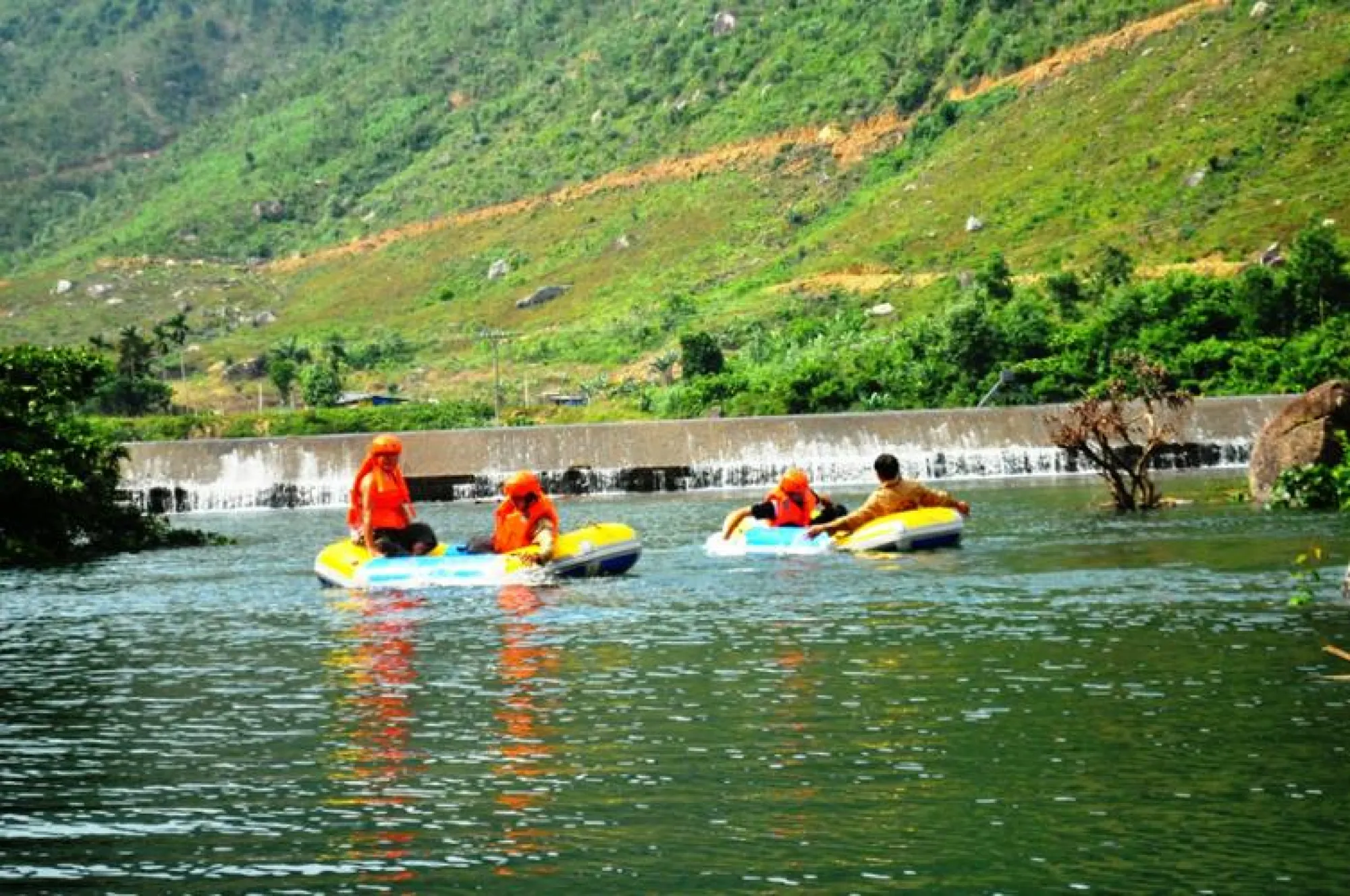 Rafting: This is considered an attractive and unmissable activity for every visitor when visiting Hoa Phu Thanh. Players will experience the feeling of sitting on a raft and moving across obstacles on the waterfall with varying slopes, heights, and stopping points at the serene, clear water. The game promises to bring visitors an extremely exciting, adventurous, and relaxing experience.