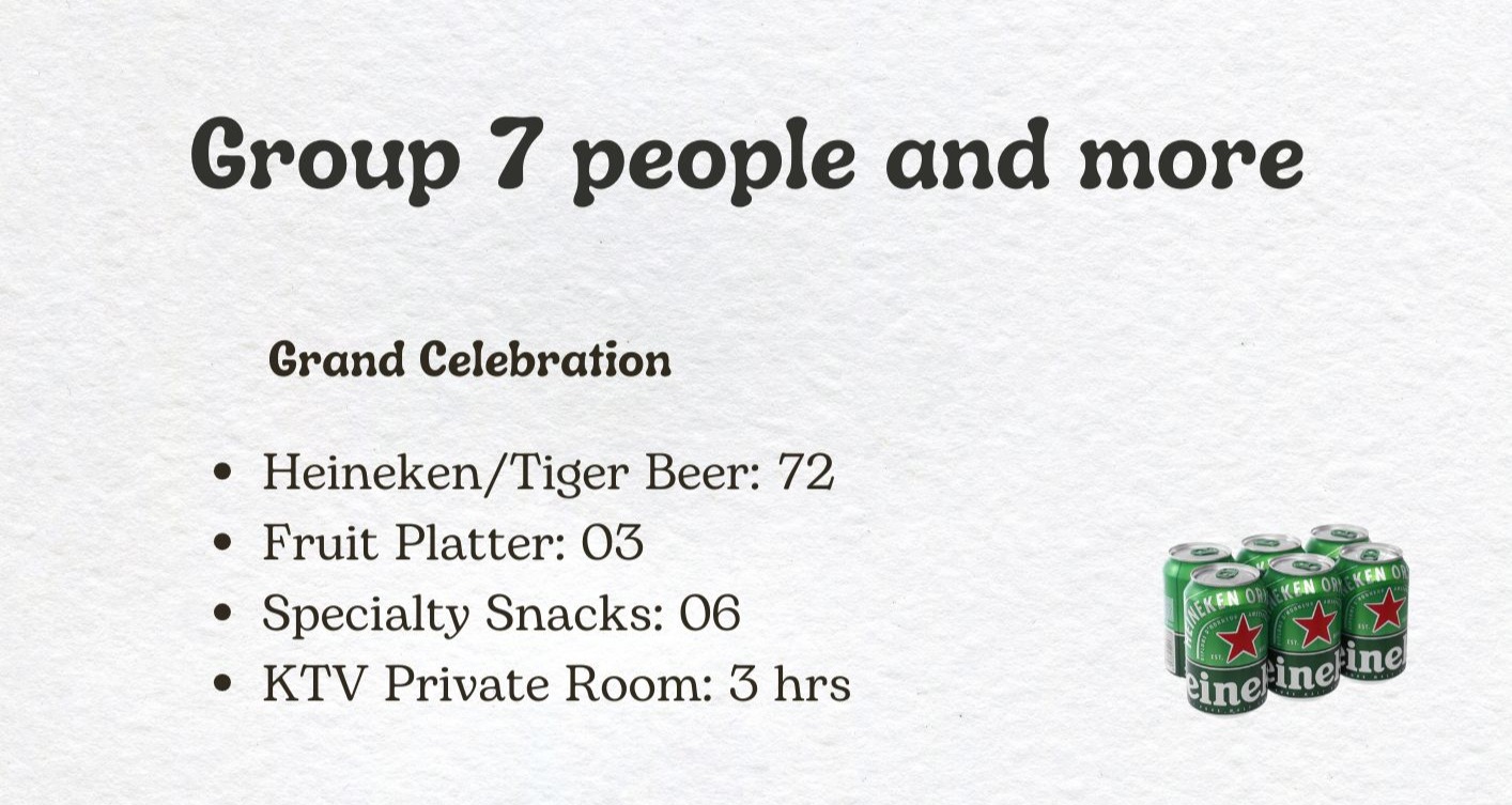 Depending on the room size, the capacity can accommodate up to 15–20 guests. Each room is equipped with high-quality sound systems, vibrant lighting effects, and comfortable seating to enhance your singing experience. Enjoy a private, stylish atmosphere perfect for relaxing, bonding, or celebrating with your favorite people.