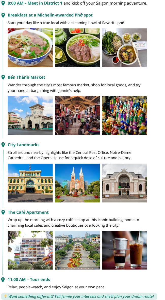 Traveling has always been Yanny’s childhood dream, and now she lives that dream by introducing visitors to her beloved city. From historic landmarks and hidden alleys to local cafés and authentic street food, she loves showing every side of Saigon — the modern, the traditional, and everything in between.