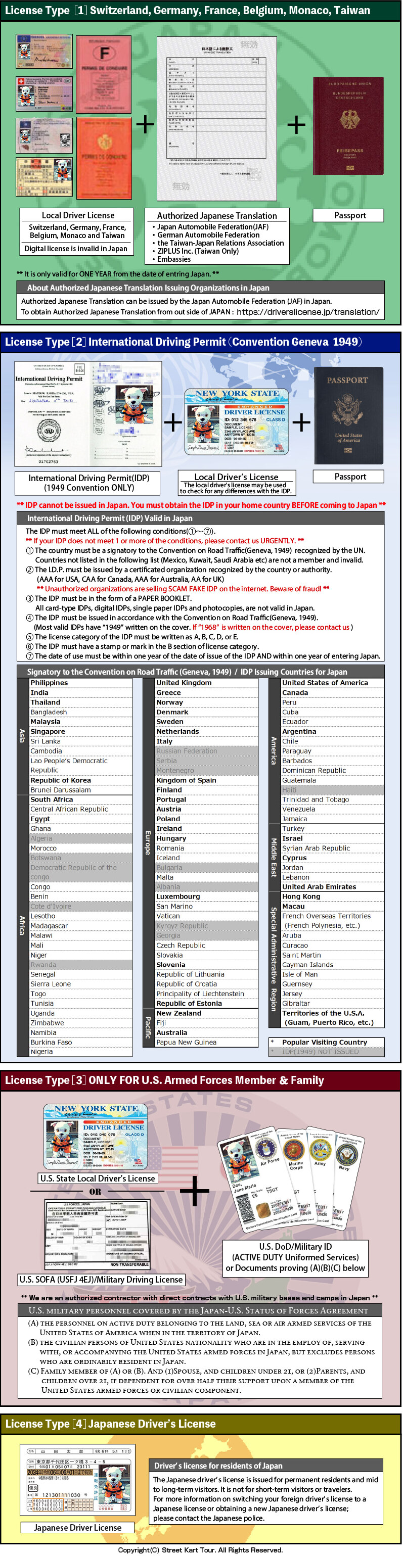 If you arrive at our shop without the required original documents (described below) to drive in Japan, you can’t join our activity and you can’t get any refund.