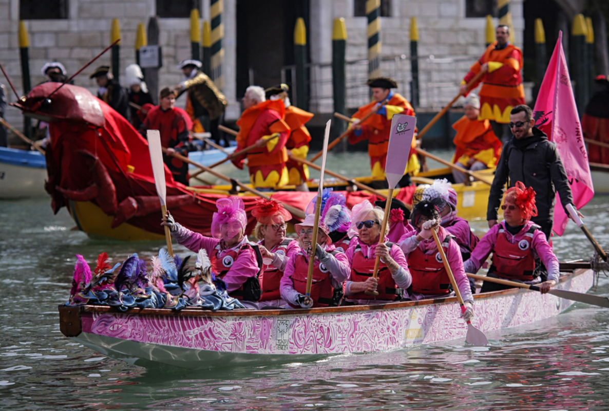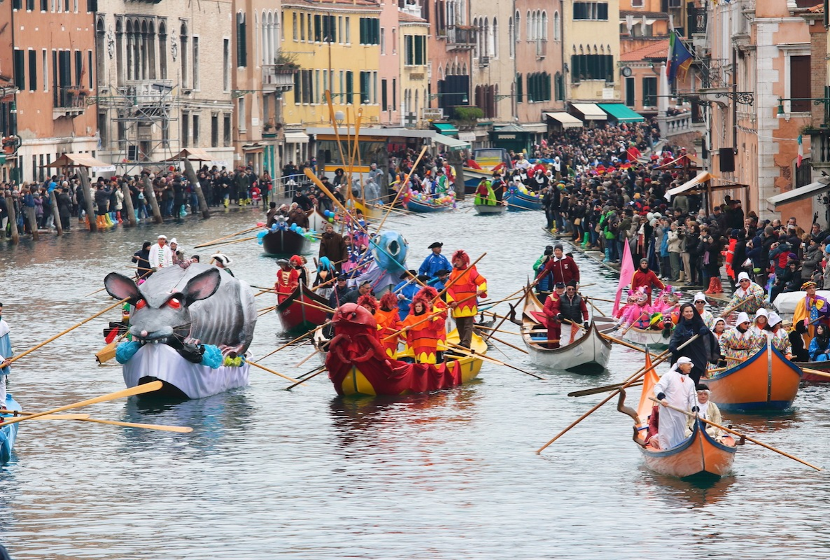 Venice Carnival Water Parade: The Carnival kicks off with a magnificent water parade where over 100 elaborately decorated gondolas and traditional boats glide down the Grand Canal, rowed by 800+ participants in spectacular period costumes. This opening spectacle showcases Venice's authentic maritime heritage in a riot of color and pageantry. Thousands of spectators line the canal banks to witness this unforgettable flotilla passing historic palazzos. The decorated boats and costumed rowers create a scene straight from Venice's golden age.​​