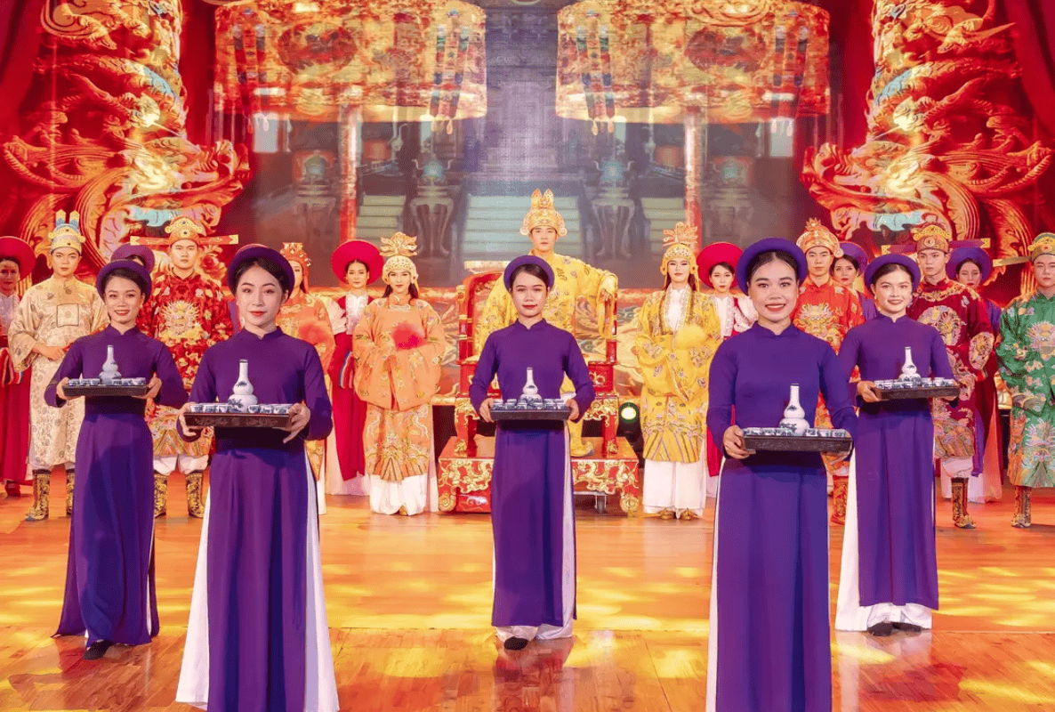 步入阮朝的辉煌,在传统越南宫廷服饰中感受皇宫的气息。岘港奥黛秀生动地展现了封建时代国王、王后及朝廷官员曾穿着的皇室服装的优雅与壮丽,那是越南标志性奥黛成型与完善的时期。通过正宗的设计与优美的呈现,这场演出为观众提供了一个了解该国皇家遗产和文化艺术的深刻视角。