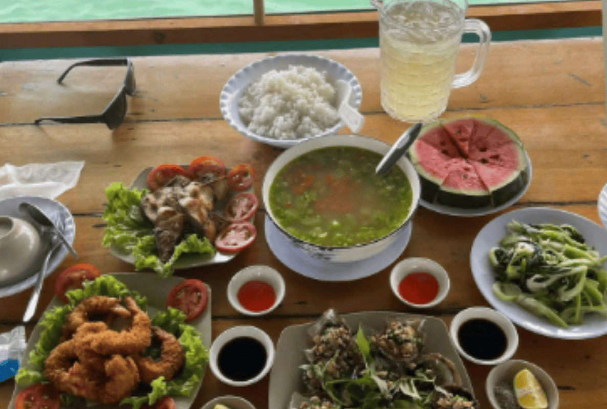 11:00 AM Rach Vem Beach – Savoring Cuisine in the Fishing Village. Guests can freely pose for check-ins, enjoy the pristine, stunning scenery, and relish a delicious lunch amidst the vast natural