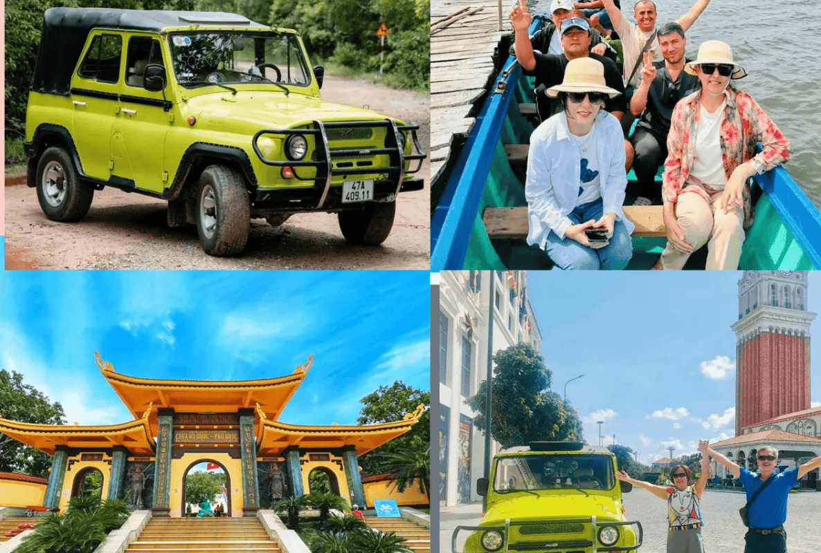 Followed by a visit to Longbeach Pearl Farm Then, enjoy a scenic coastal drive, perfect for taking photos with the Jeep. Visit Ho Quoc Pagoda, where you’ll be surrounded by beautiful views. Relax at Sao Beach, with its fine sand and clear waters, and take time for refreshments. Next, explore the historic Phu Quoc Prison and its powerful history. Later, admire the Mediterranean City Finally, visit the Vui Fet Night Market to enjoy local delicacies, shopping, and entertainment